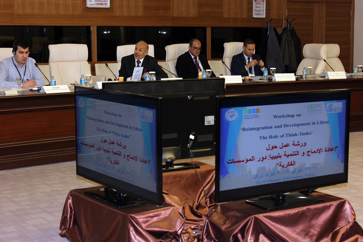 “Libya’da Bütünleşme ve Kalkınma: Düşünce Kuruluşların Rolü” konu başlığını taşıyan çalıştay, İslam Ülkeleri İstatistik, Ekonomik ve Sosyal Araştırma ve Eğitim Merkezi (SESRIC), Yeniden Entegrasyon ve Kalkınma Libya Programı (LPRD), Siyaset, Ekonomi ve Sosyal Araştırmalar Vakfı (SETA) ve Libya Politika ve Stratejiler Organizasyonu (LOOPS) tarafından 22-23 Şubat 2016 tarihlerinde Ankara’da SESRIC Merkez Binası’nda düzenlendi.